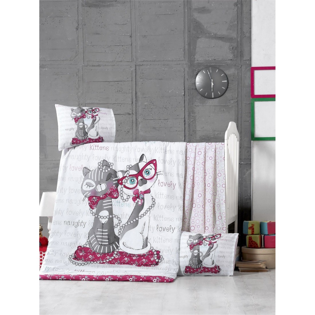 Σετ Παπλωματοθήκη Κούνιας 2 Τεμαχίων Rythmos Kittens Ροζ 100x150
