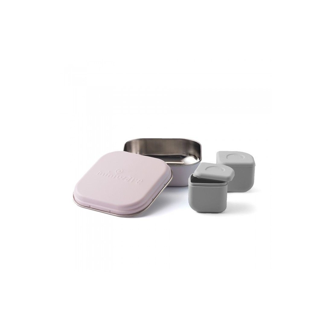 Miniware Des.12 Δοχείο Φαγητού Inox Ροζ 15X15Cm Με 2 Αποθηκευτικά Δοχεία Σιλικόνης