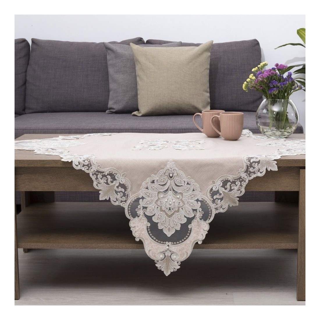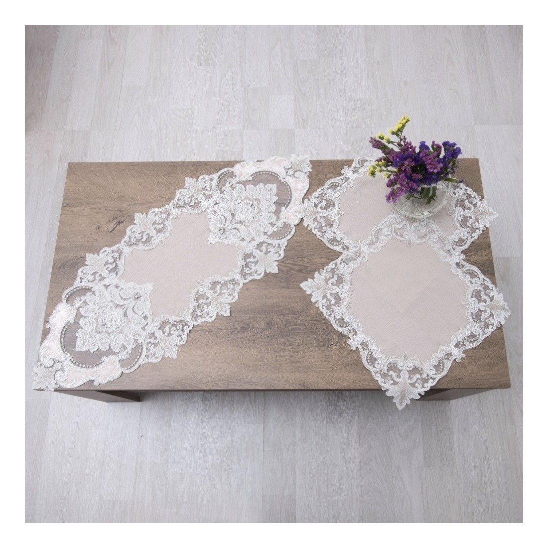 Σετ 5 Τεμ. Τραπεζοκαρέ/Καρέ/Σεμέν/Πετσετάκια Dimeco 2134 Beige