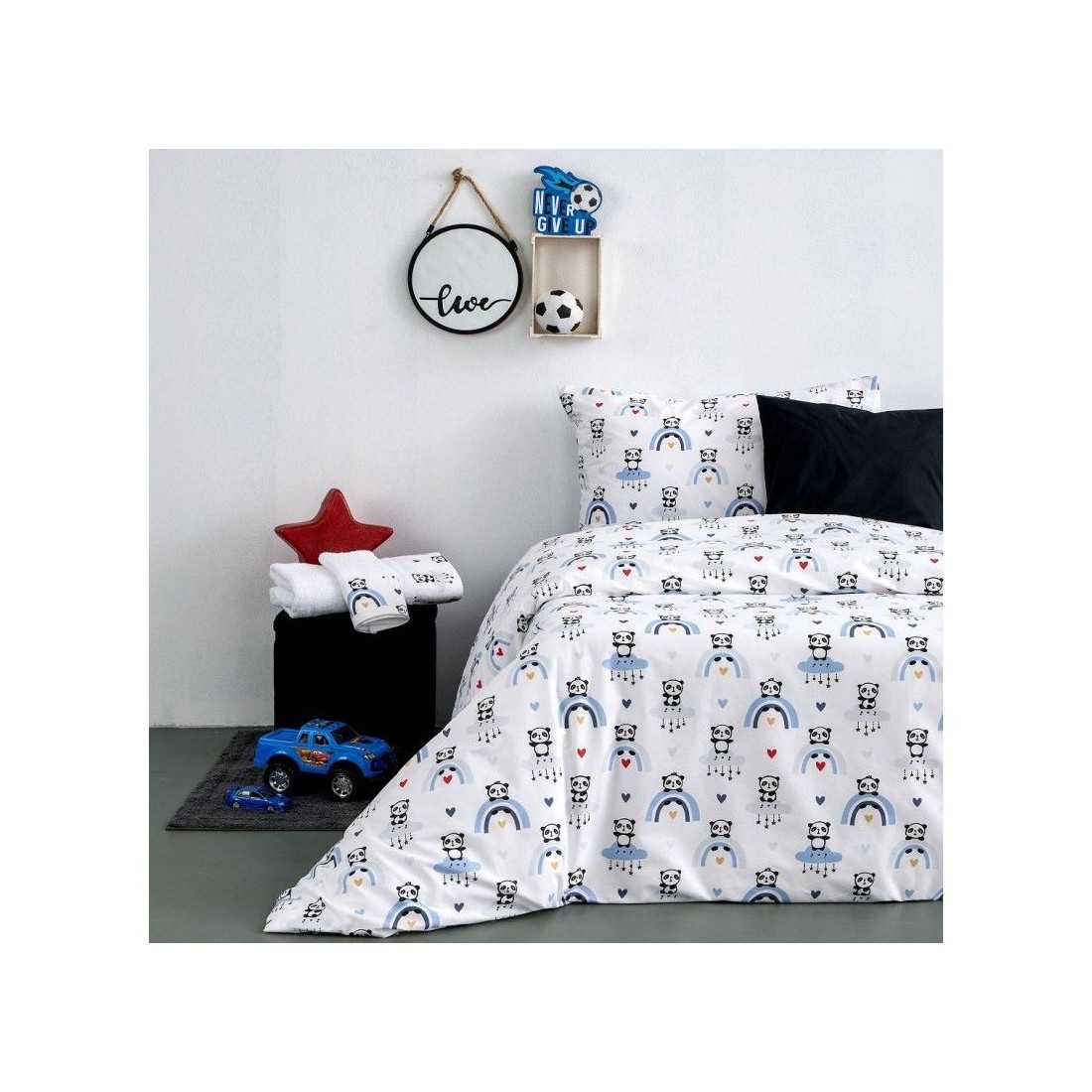 ΚΟΥΒΕΡΛΙ MONO 160X240-PANDA BLUE - Σε λευκό φόντο και μπλέ λεπτομέρειες και σχέδιο με ουράνιο τόξο που εντυπωσιάζει τους μικρούς μας φίλους. Ποιότητα πρωτοποριακό design . κατασκευασμένα από 100% βαμβάκι με 152 κλωστές. ύφασμα που αναπνέει ώστε να προσφέρει έναν άνετο και υγιή ύπνο. Με σεβασμό προς το ευαίσθητο παιδικό δέρμα και τις καλύτερες πρώτες ύλες. Θα το βρείτε και με ασσορτί πετσέτες και σετ σεντόνια .