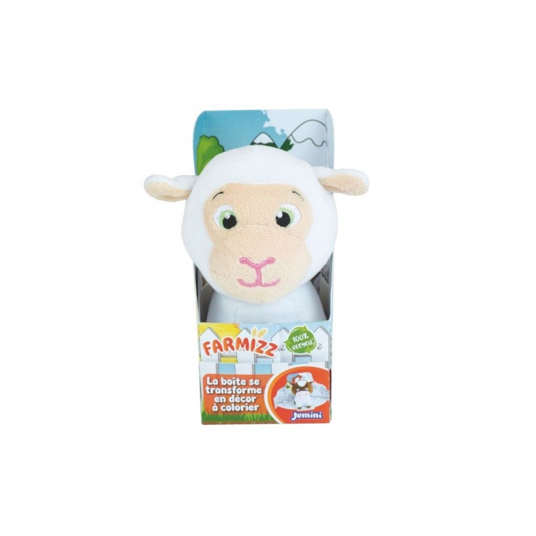 Συλλεκτικά βελούδινα παιχνίδια Farmizz 15 cm κατασκευασμένο από 100% ανακυκλωμένα υλικά. Το κουτί τους μετατρέπεται σε ντεκόρ για να χρωματίσετε. Όλα τα κουτιά της σειράς συνδυάζονται για να δημιουργήσουν μια μεγάλη φάρμα, τη οποία τα παιδιά μπορούν να χρωματίσουν και να εφευρίσκουν αμέτρητες ιστορίες με τους μικρούς της κατοίκους: