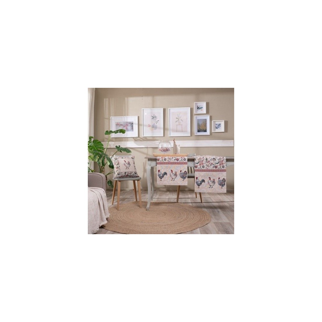 Τα υφάσματα υφαίνονται στην Ισπανία και μεταποιούνται από την εταιρία μας.Η σύνθεση του υφάσματος αποτελείται από νήματα ακρυλικά σε ποσοστό 40%. βαμβακερά σε ποσοστό 40% και πολυεστερικά σε ποσοστό 20%.Το συγκεκριμένο ύφασμα είναι γνωστό ως στόφα ή δαμάσκο.