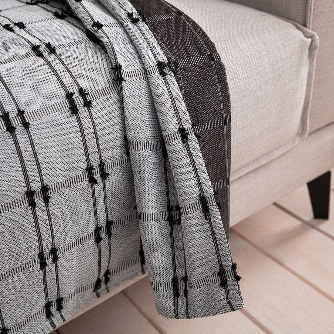 Βαμβακερό ριχτάρι, με chenille ανάγλυφα φουντάκια στην ύφανση. Κατασκευασμένο με πενιέ βαμβακερά νήματα που αποτρέπουν την δημιουργία κόμπων.