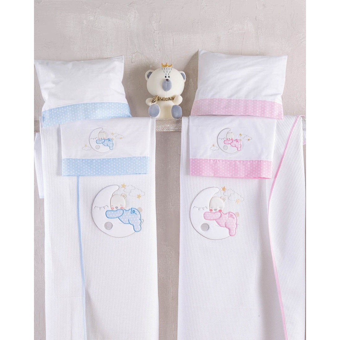 Σετ Σεντόνια Φανελένια Κούνιας 3 Τεμαχίων Rythmos Elephant Friends Ροζ 100x160