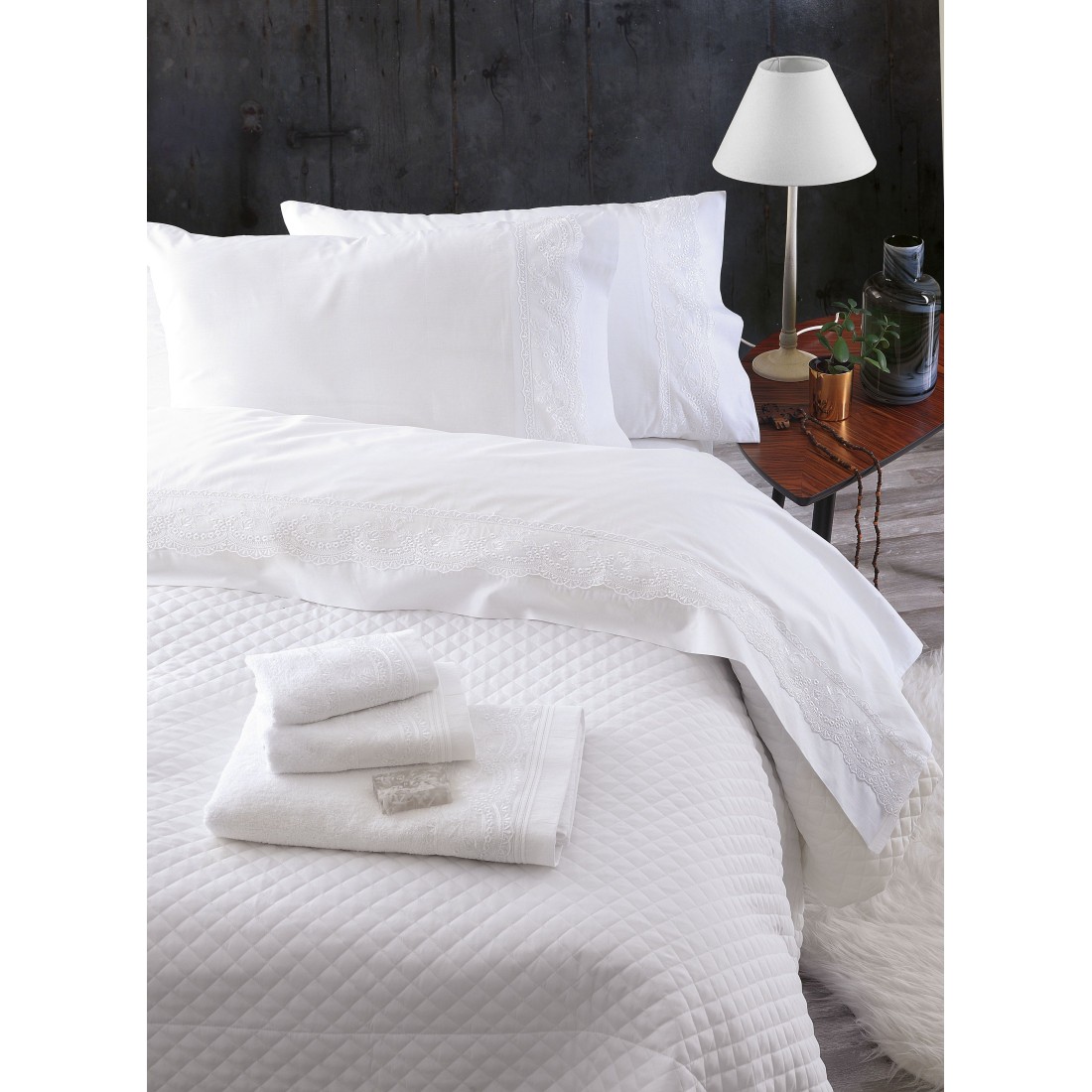 Σετ Σεντόνια Υπέρδιπλα 4 Τεμαχίων Rythmos Nena Λευκό 230x260