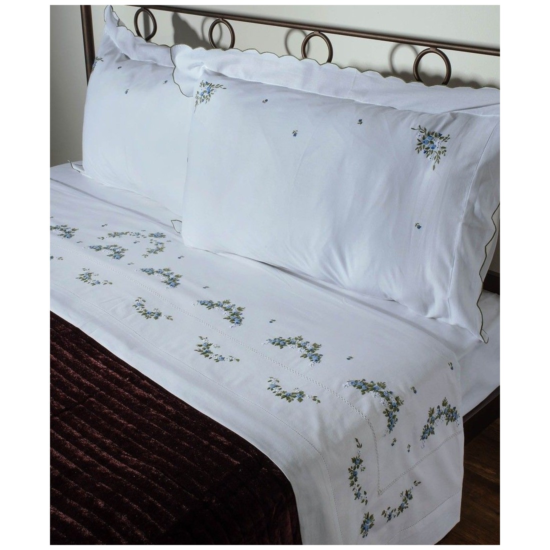 Βαμβακερό χειροποίητο ροκοκό σεντόνι, κατωσέντονο και δύο μαξιλαροθήκες  58cm x 90cm