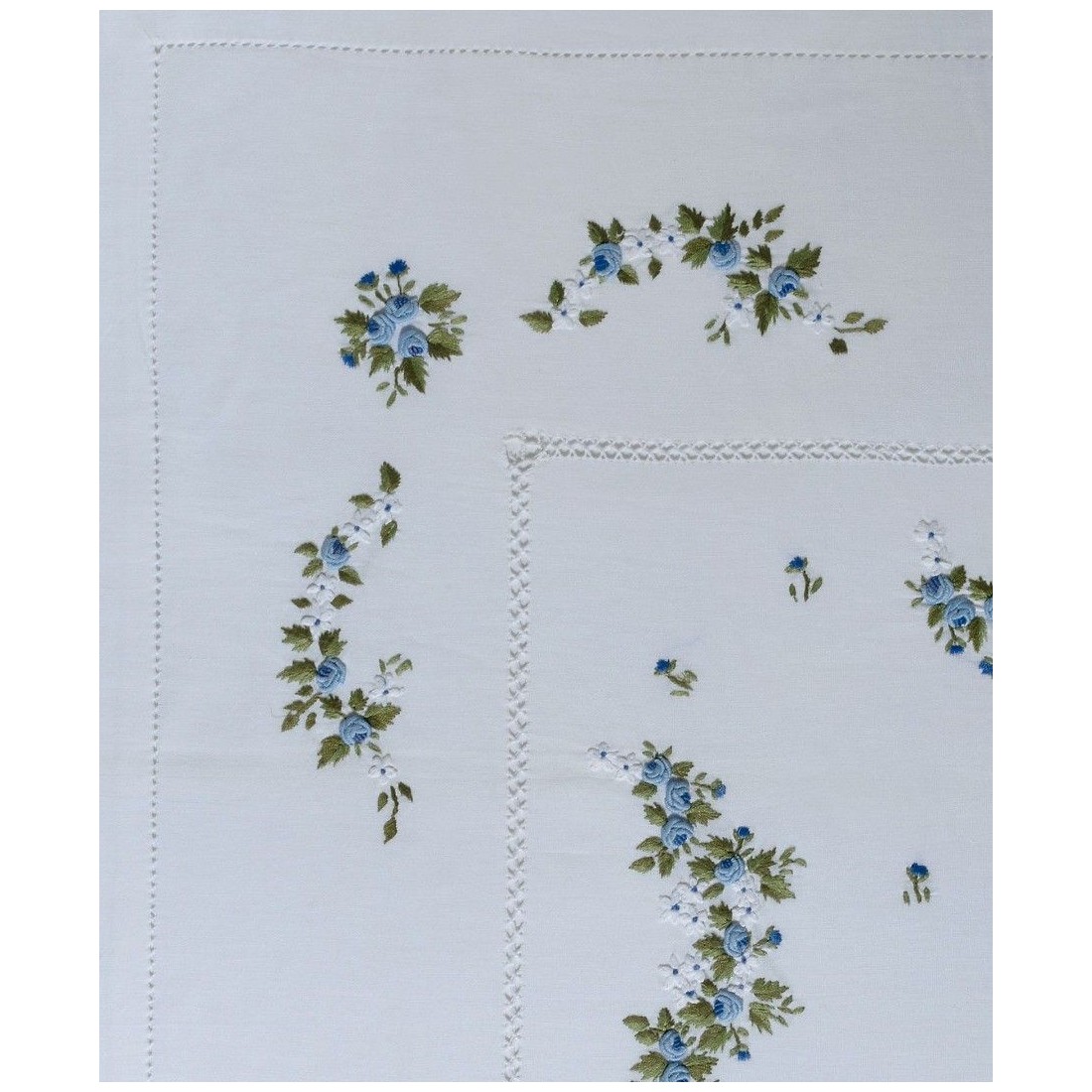 Σετ Σεντόνια Χειροποίητα Υπέρδιπλα 4 Τεμαχίων Silk Fashion 7003 Λευκό Σιέλ 225x270