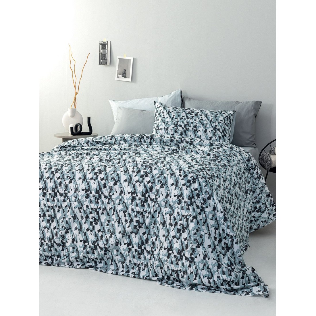 Σετ Σεντόνια Υπέρδιπλα με Λάστιχο 4 Τεμαχίων Rythmos Ortensia Μπλε 165x205+25
