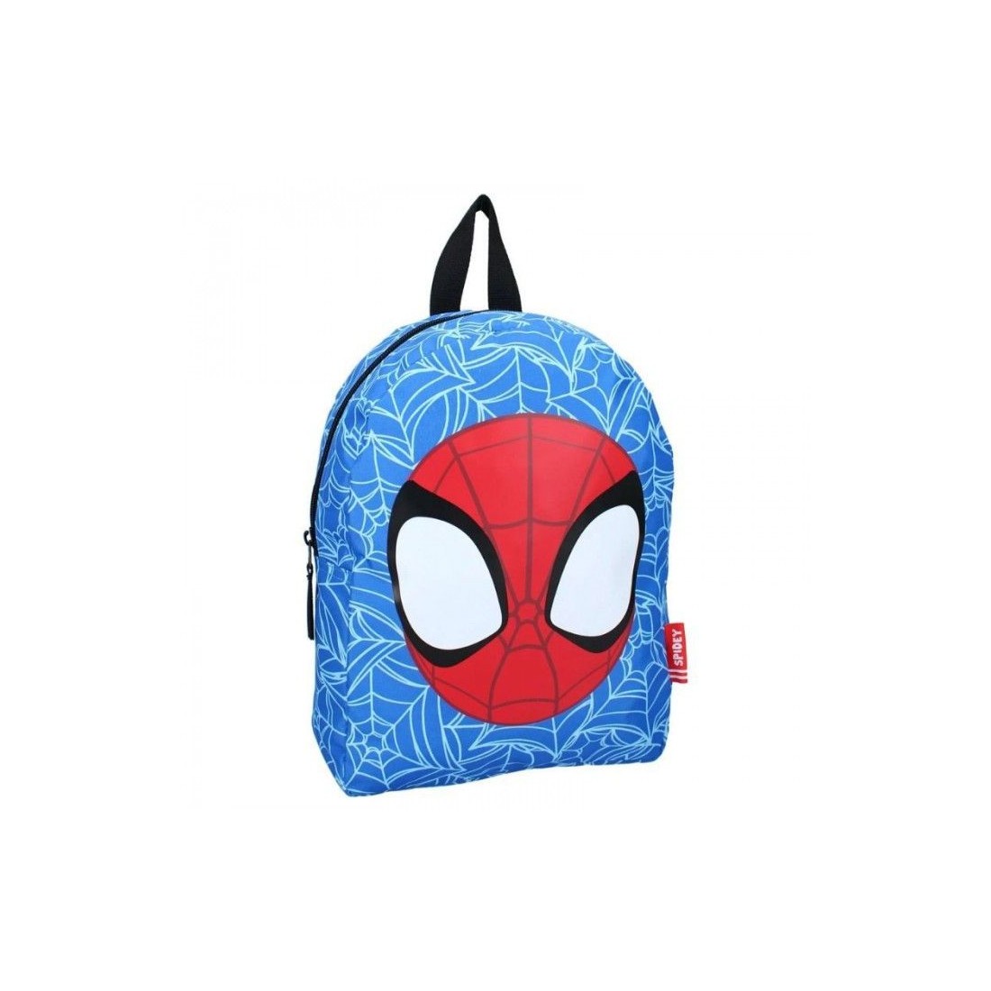 Αυτή η "cool" τσάντα Spidey από τη συλλογή Style Icons είναι ιδανική για όλους τους θαυμαστές του Spidey! Η τσάντα έχει μπλε χρώμα και ένα μεγάλο σχέδιο του Spidey στο μπροστινό μέρος. Επιπλέον, σε ολόκληρη την τσάντα υπάρχει ένα μοτίβο ιστού αράχνης. Ακόμη στο πάνω μέρος υπάρχει ένα μαύρο χερούλι και στο πίσω μέρος 2 ιμάντες ώμου οι οποίοι είναι ρυθμιζόμενοι έτσι ώστε η τσάντα να μπορεί να προσαρμοστεί άνετα. Η κύρια θήκη κλείνει και ανοίγει με ένα σκούρο μπλε φερμουάρ.