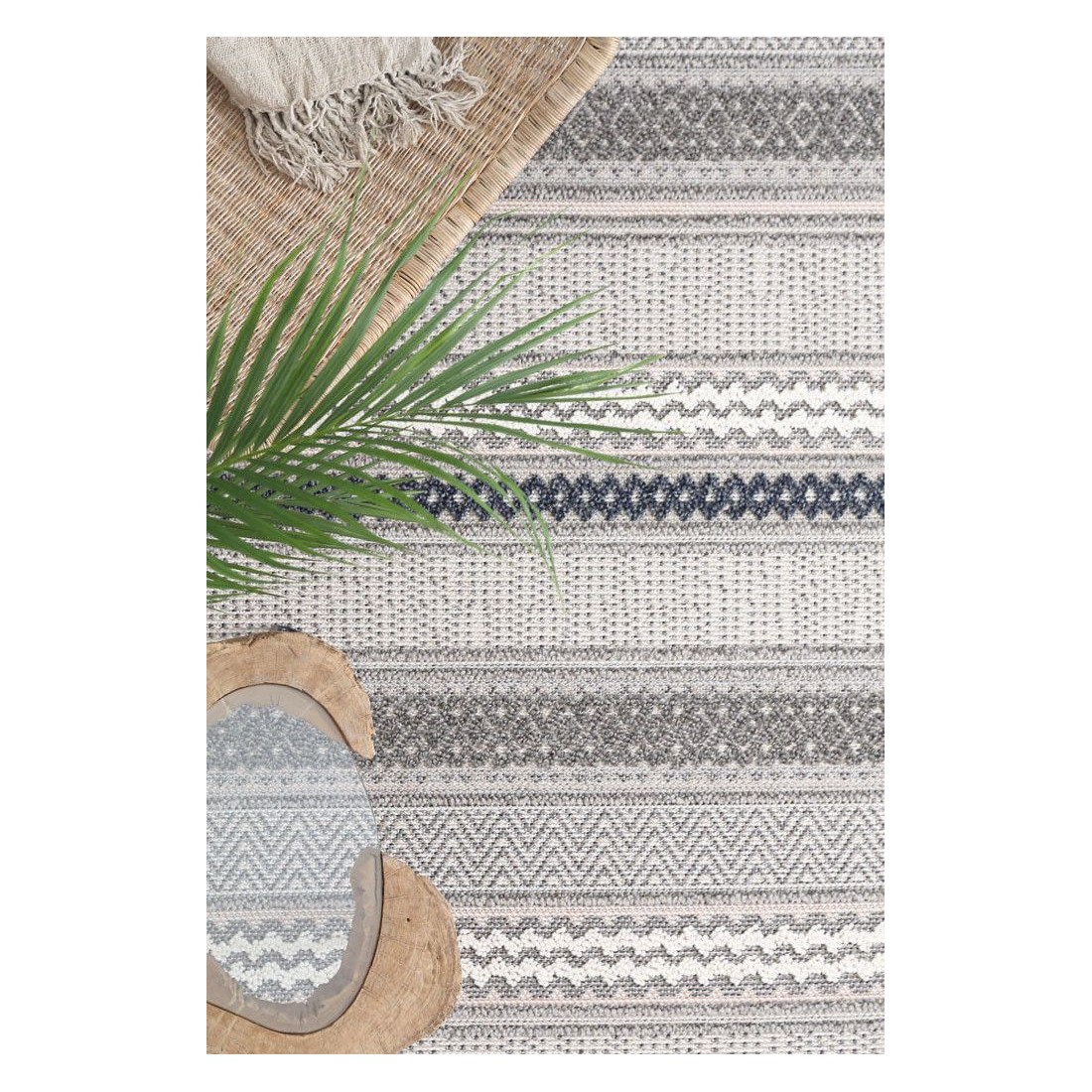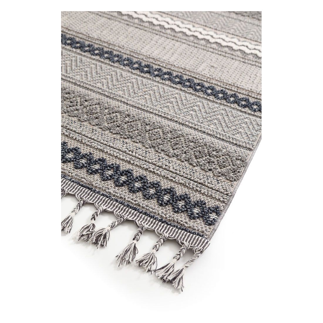 Η όμορφη και σύγχρονη τάση του boho σχεδιασμένη με γεωμετρικά σχήματα και ιδιαίτερο χαρακτηριστικό το ελαφρύ - μικρό ύψος πέλους. καθώς και τα σκουρόχρωμα κρόσσια. Ιδανικό για μίνιμαλ - νεανική διακόσμηση και απόλυτα ταιριαστό τόσο σε σαλόνια. όσο και σε βοηθητκούς χώρους λόγω της πρακτικότητάς του.